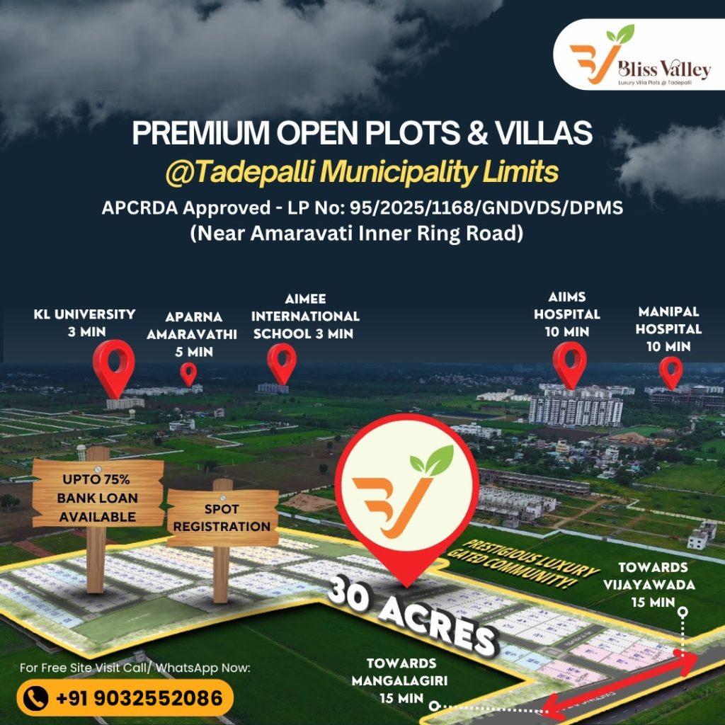 a new project of 30 acres at Tadepalli near KL University. AP CRDA Approved Layout with LP No.95/2025. The project is located within the Tadepalli Municipal limits. The best location for investment and living as it is very near to the Amaravathi Capital